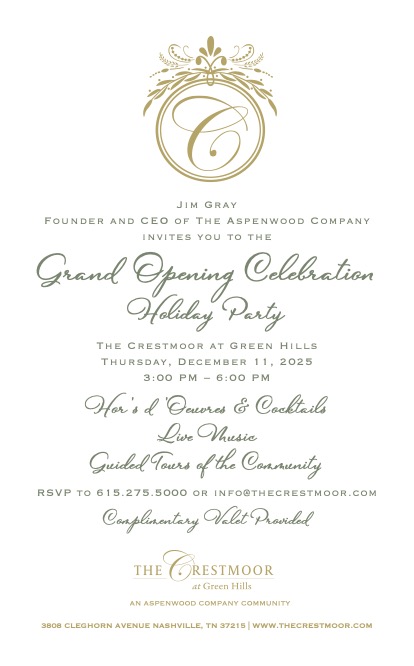 THURSDAY - OCTOBER 23, 2025 2:00 PM - 4:00 PM RSVP TO SHANNON STEPHENS 615.275.5000 OR INFO@THECRESTMOOR.COM